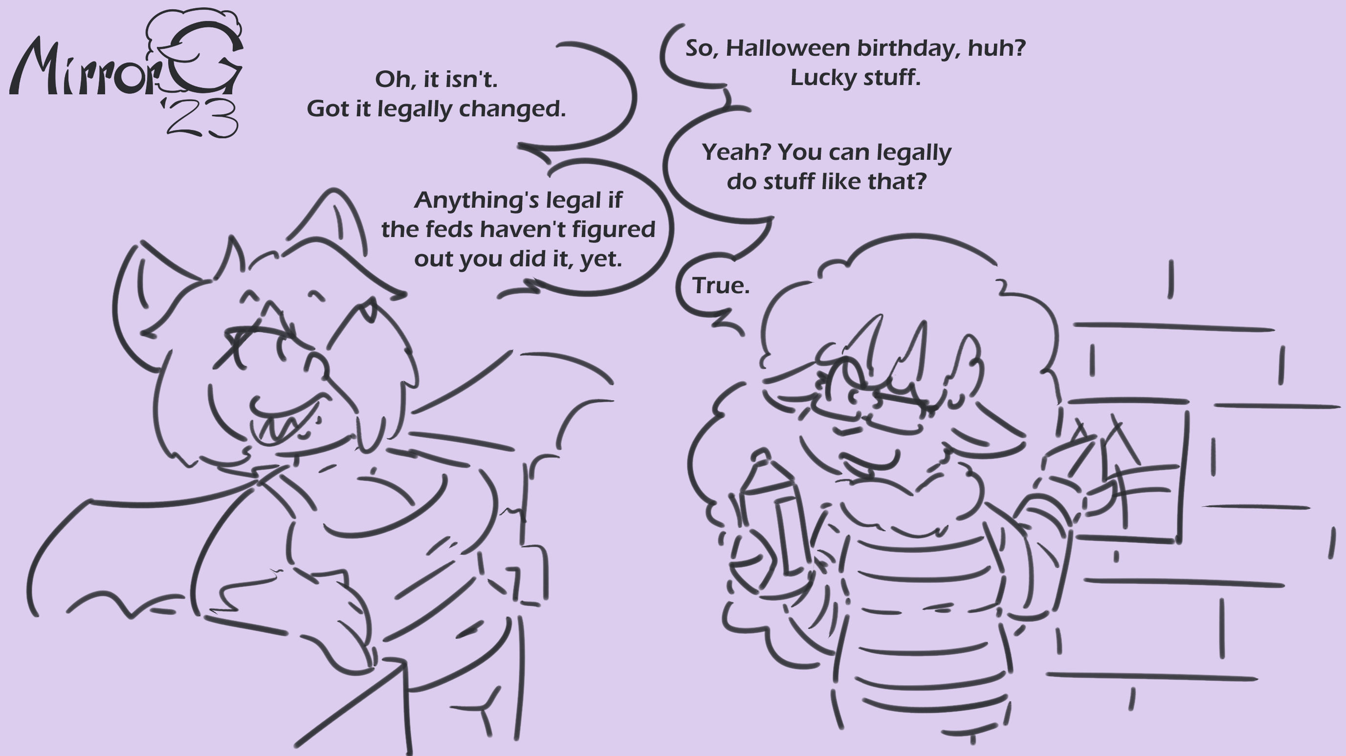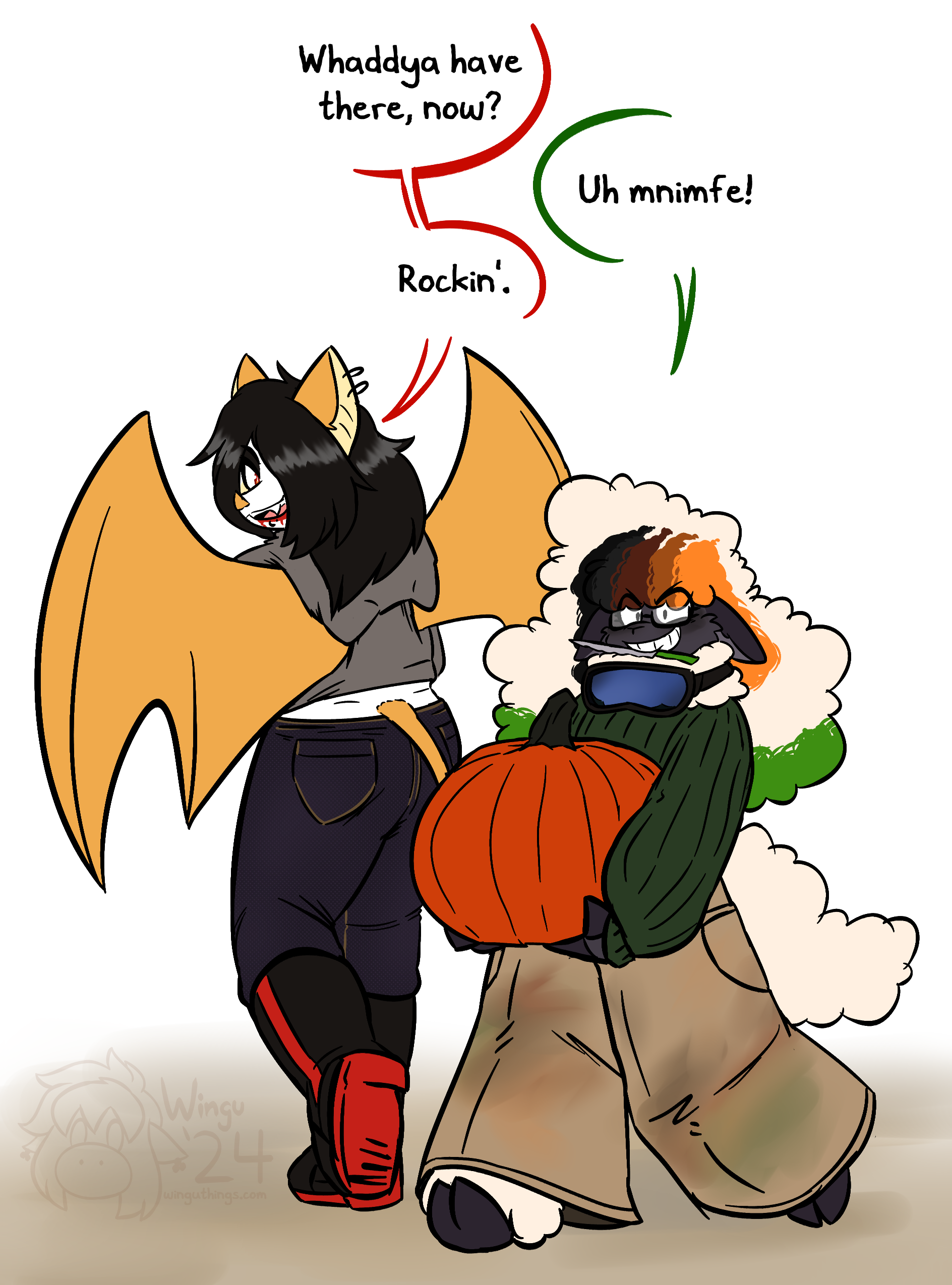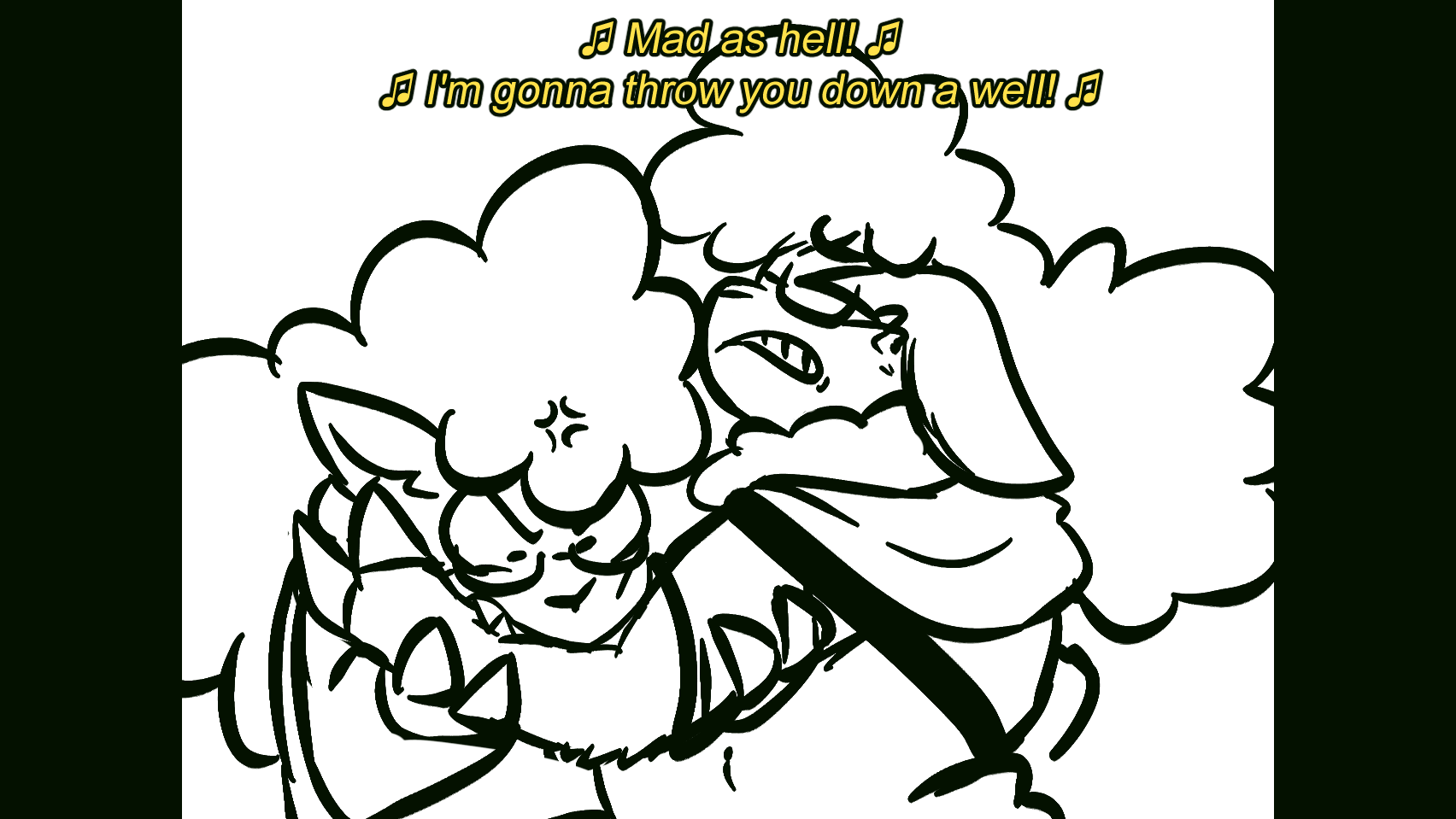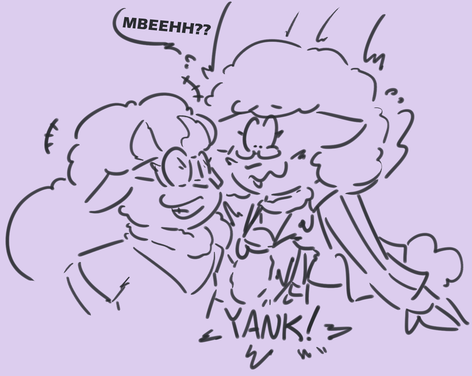 An eccentric sheep from the PNW with a love for the hardest rock genres there is, thrash metal in particular being her love. She's the youngest, and also newest member to the band, having joined in mid-2020. While a talented rhythm guitarist, her abilities go much further into not just music, but also art, being a wild and messy traditional painter. She dyes her wool various bright colors, and makes sure her guitars are always painted in bright, tie dye colors, even utilizing rainbow strings. She's wild and mischevious, often pranking or joking with her bandmates the most. Her most notable on-stage feature is her goggles, which she just thinks are pretty cool. At 5'3", she is the shortest member of the band and exudes a "gremlin" energy. This also typically manifests in her being one of the biggest risk takers in the band, sometimes putting her life in grave danger for "the bit." She's also the designer of the band's current "MF" logo.